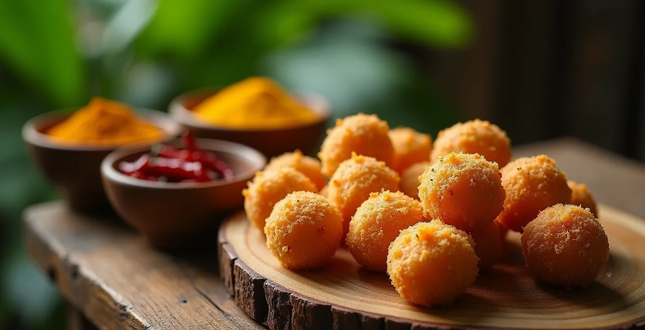 La magie du bonbon piment réside entièrement dans ce duel de textures. Un bonbon piment réussi n’est pas juste un beignet ; c’est une expérience sensorielle qui commence par un « crac » satisfaisant, immédiatement suivi par la découverte d’un cœur tendre et parfumé. Cette dualité est la signature d’une préparation maîtrisée, un équilibre délicat entre deux états de la matière qui fait toute la différence entre un beignet lambda et une véritable icône créole.