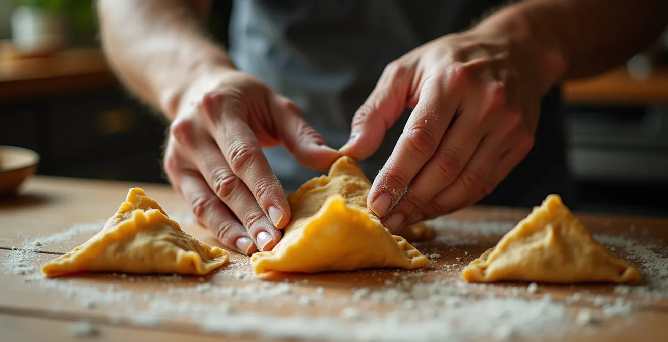 - Scellage final : Utilisez un mélange de farine et d’eau (« colle ») pour fermer la dernière languette. C’est l’assurance anti-ouverture dans la friture.